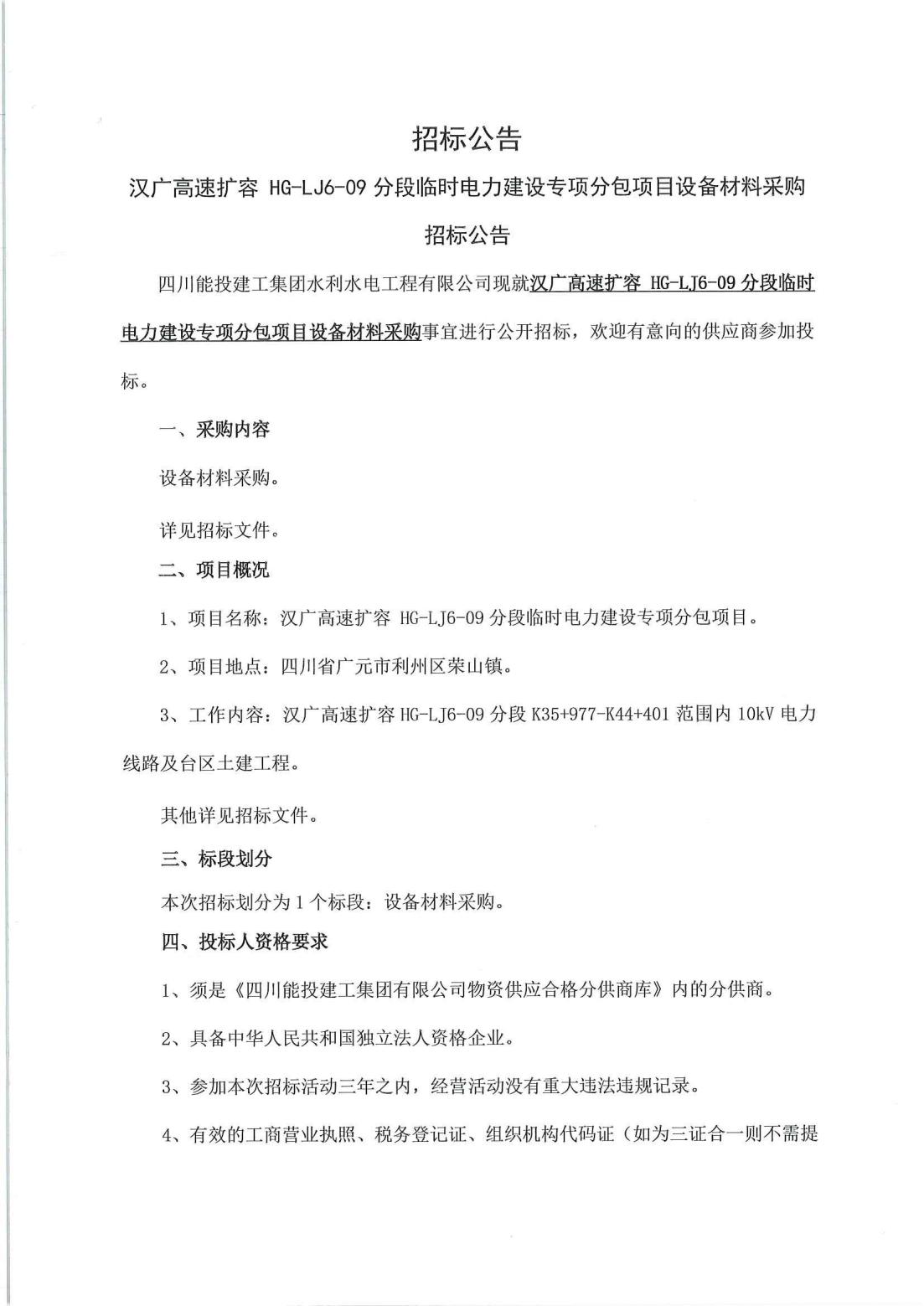 下一条:汉广高速扩容 HG-LJ6-09分段临时电力建设专项分包项目施工劳务分包一标段招标公告