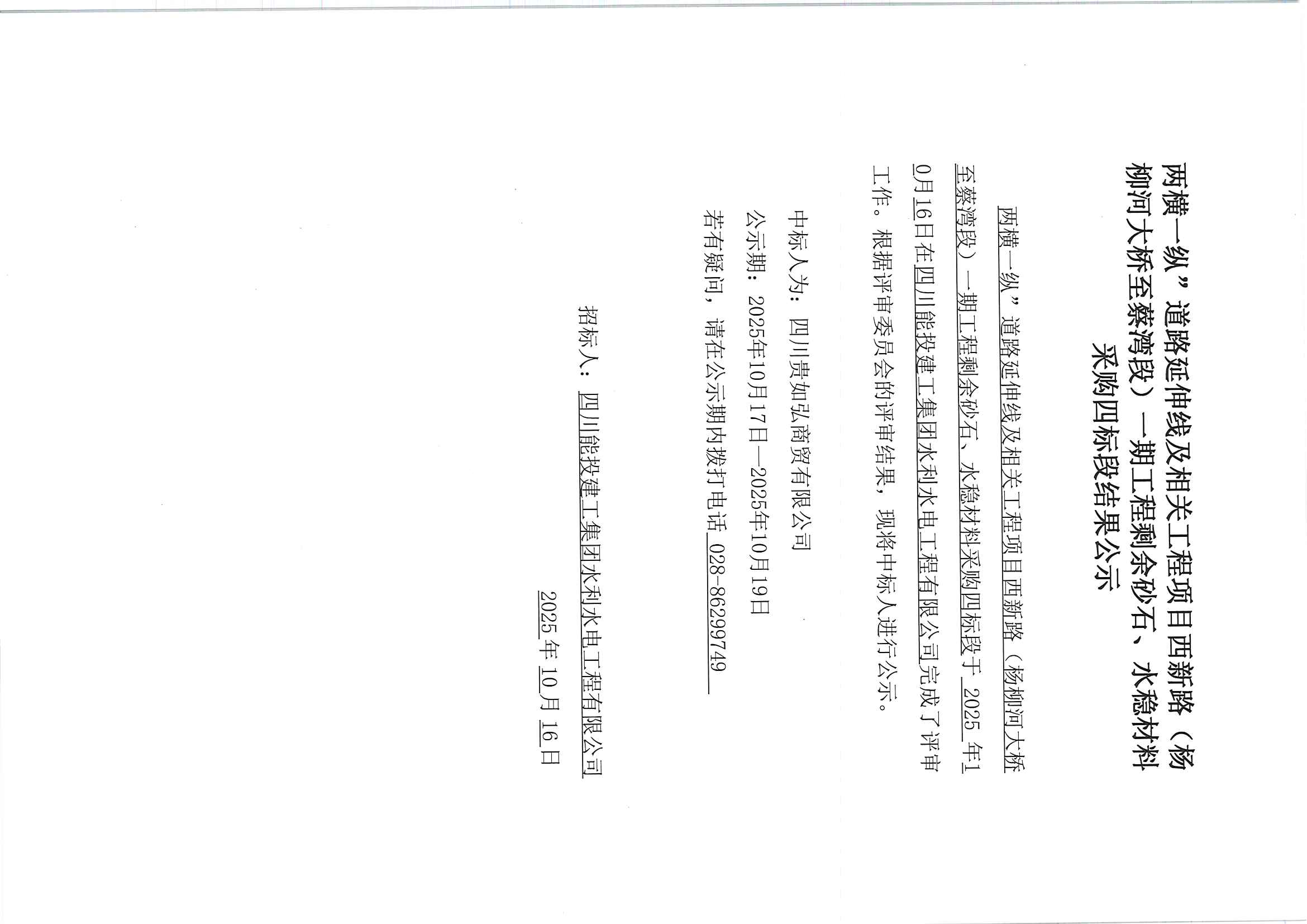 下一条:两横一纵”道路延伸线及相关工程项目西新路(杨柳河大桥至蔡湾段)一期工程剩余砂石、水稳材料采购三标段结果公示