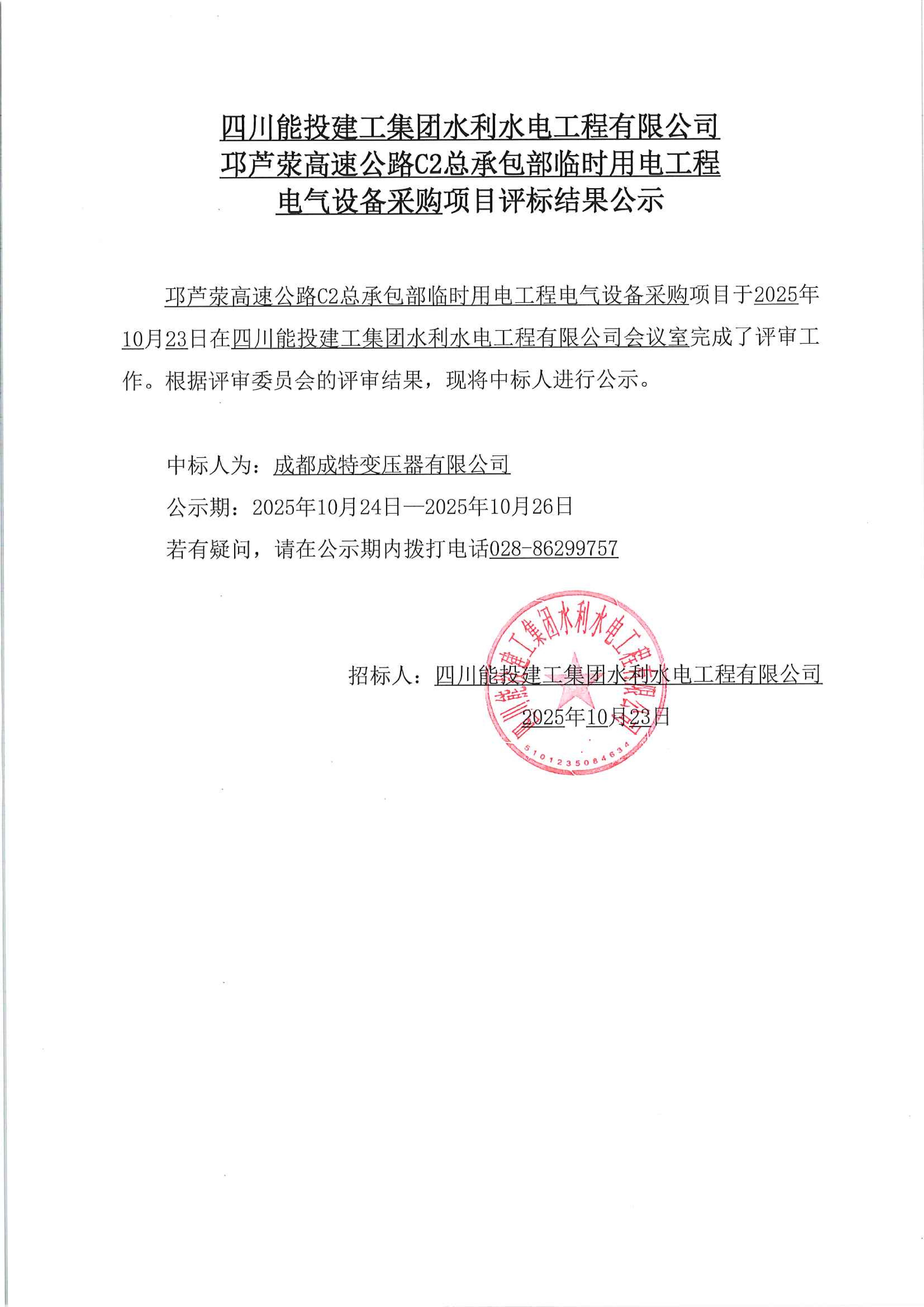 邛芦荥高速公路C2总承包部临时用电工程电气设备采购评标结果公示