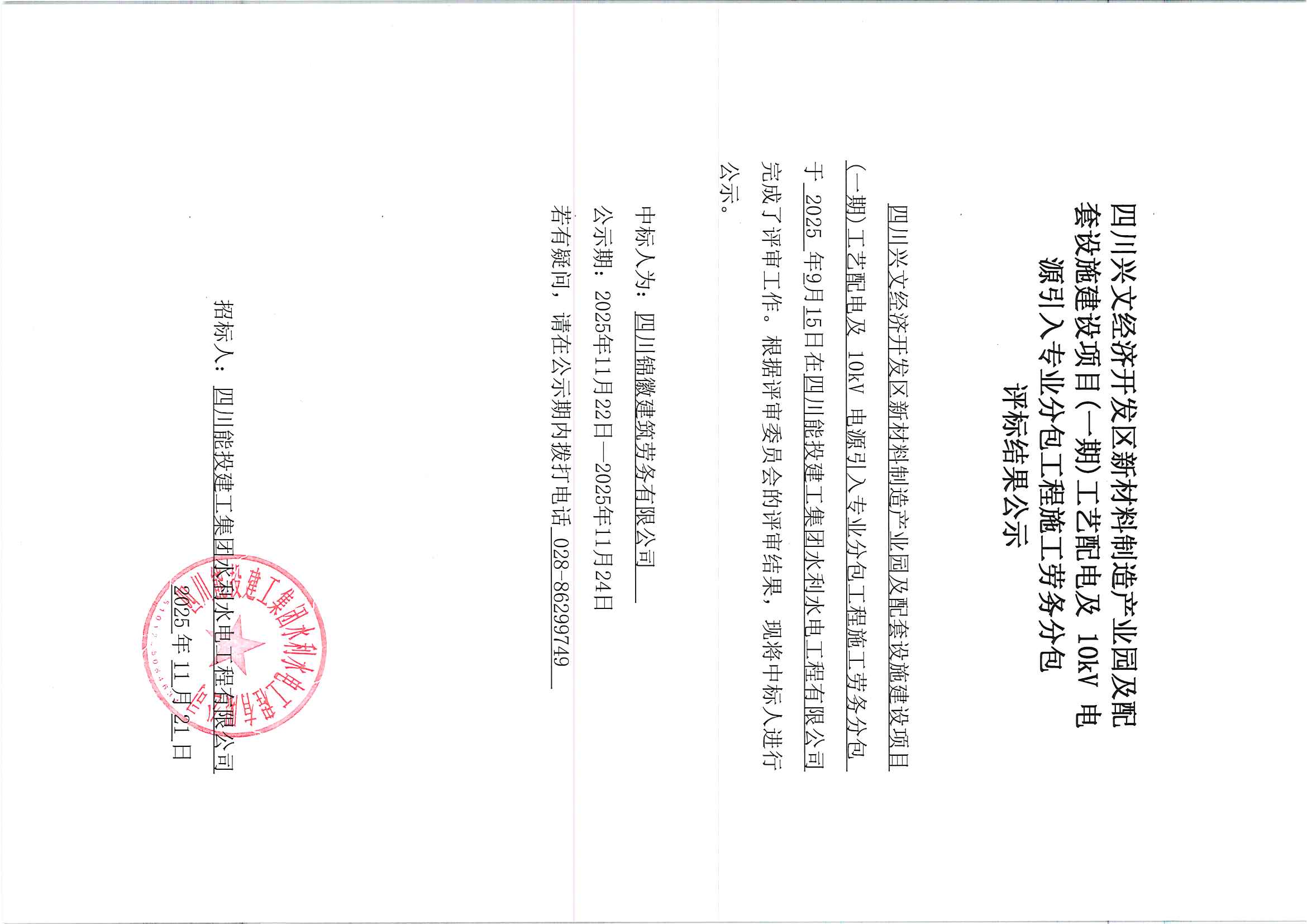 上一条:四川兴文经济开发区新材料制造产业园及配套设施建设项目(一期)工艺配电及10kV电源引入专业分包工程设备材料采购评标结果公示
